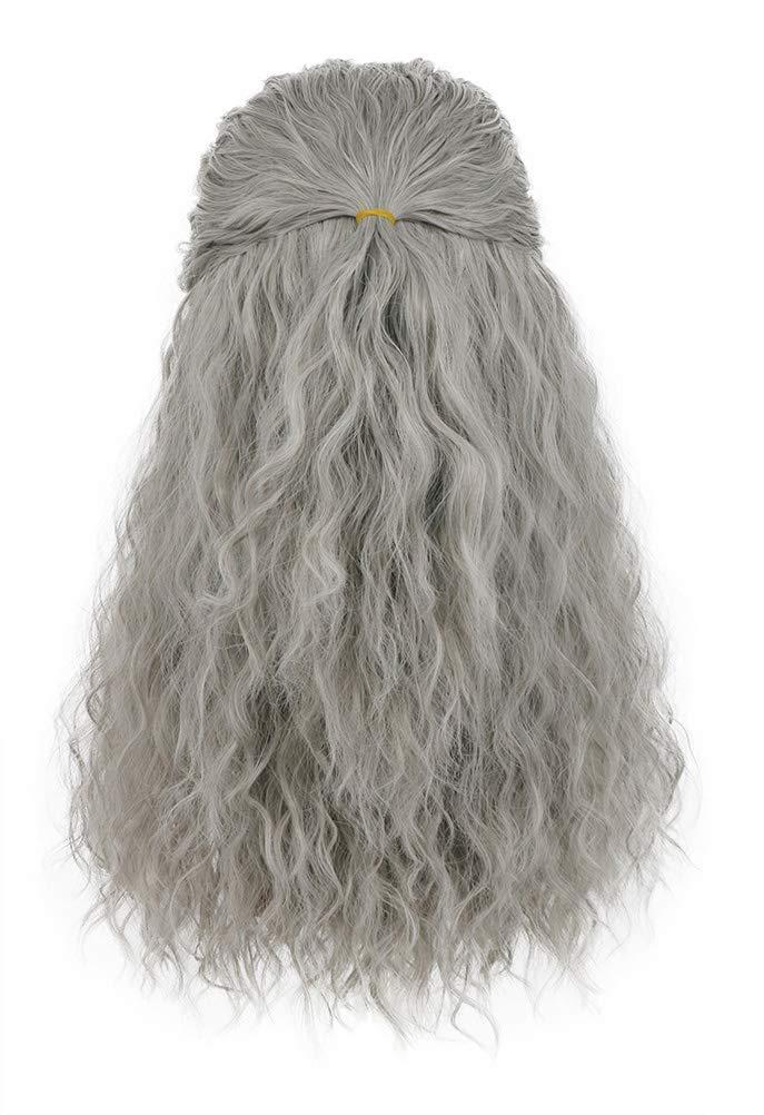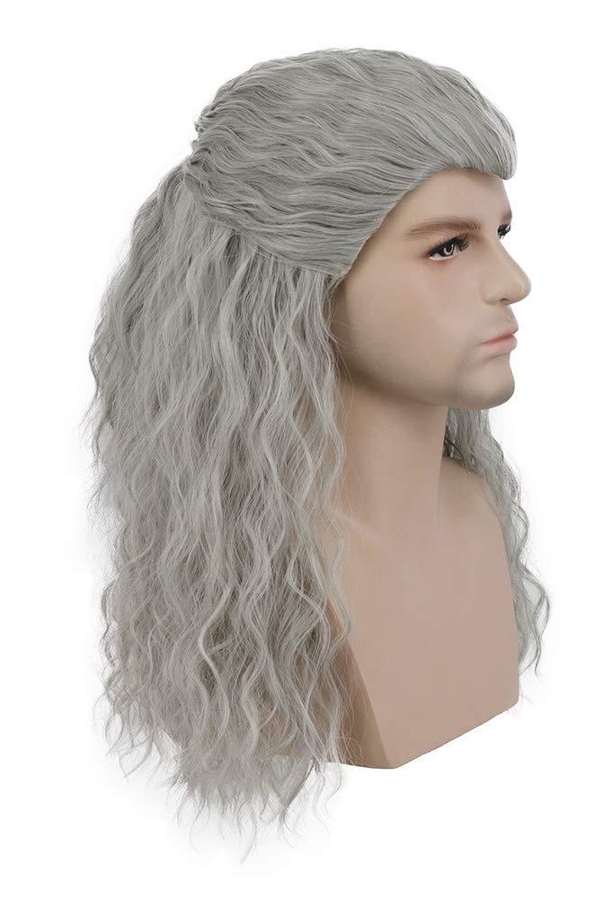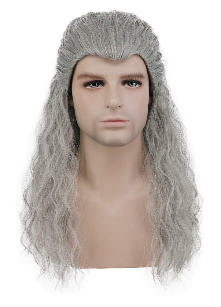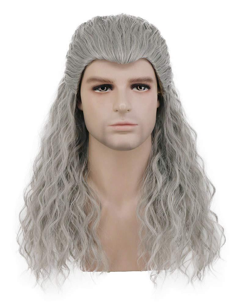 karlery Adult Men Long Curly Wave Silver Gray Wig Halloween Cosplay Anime Costume Party Wig