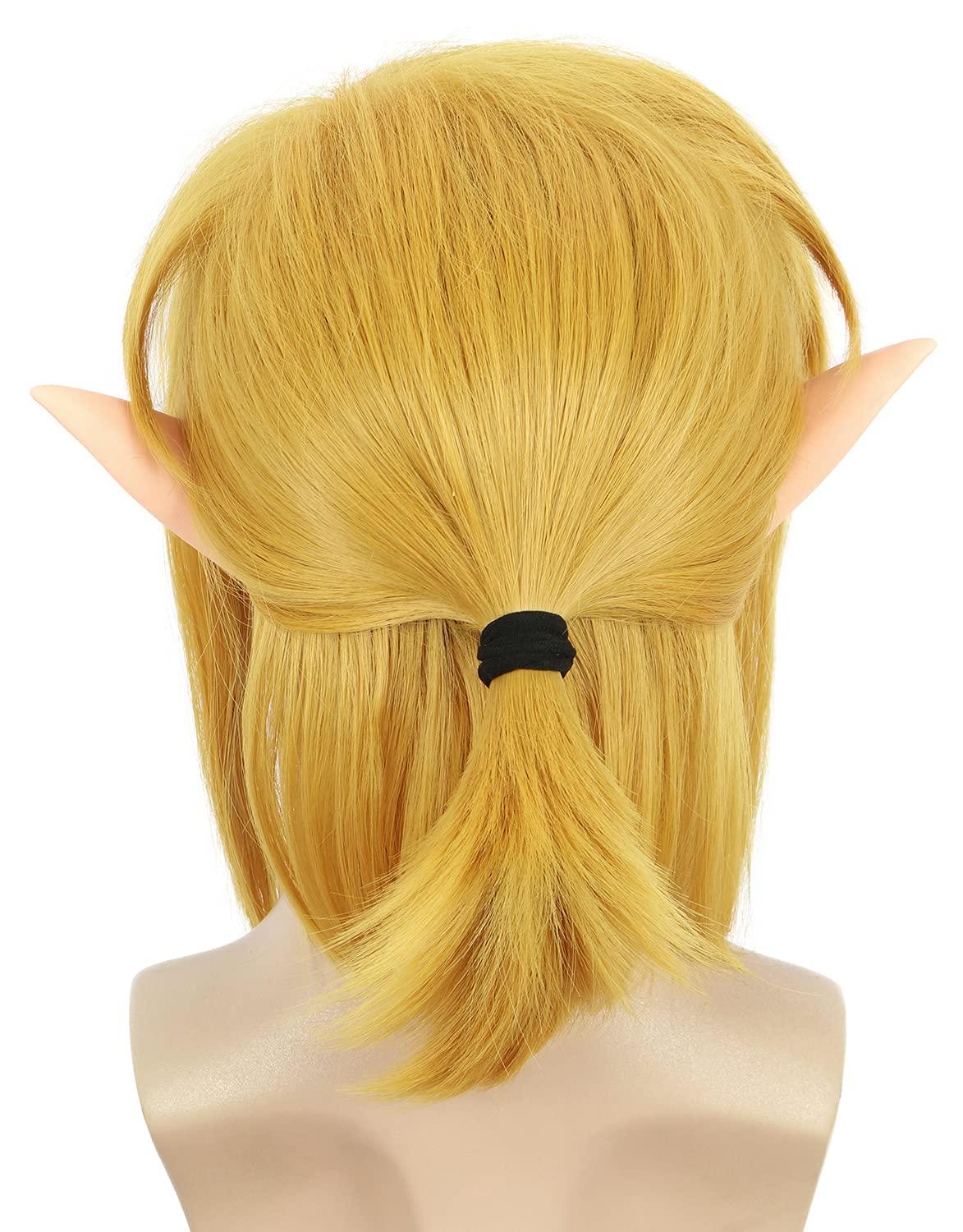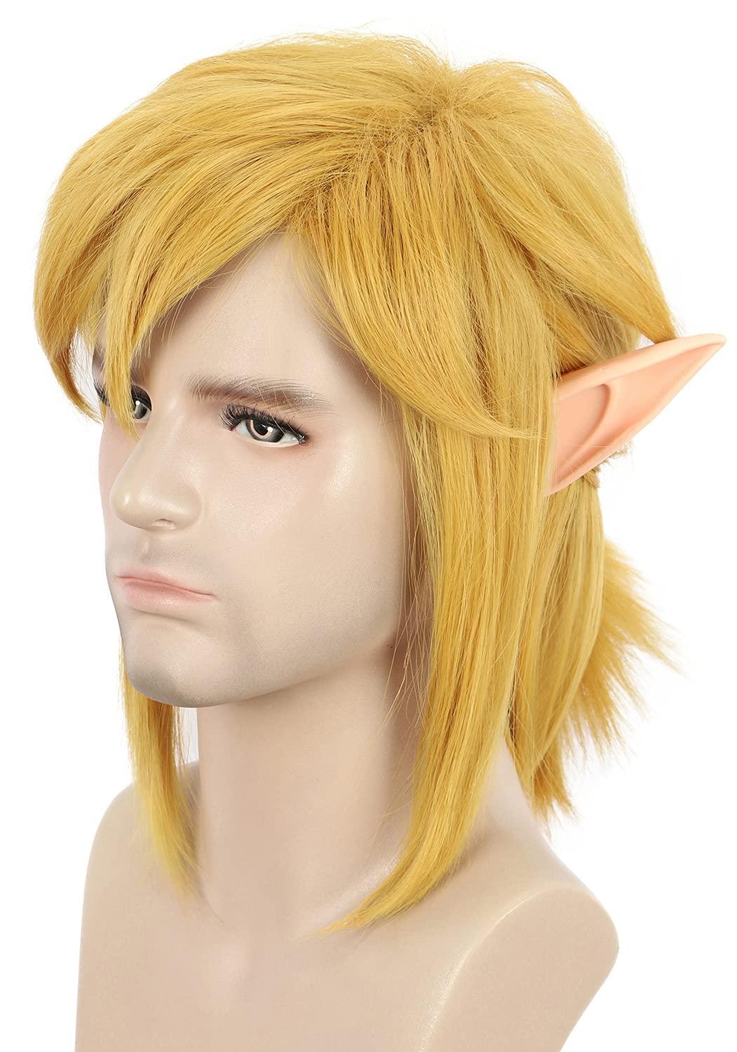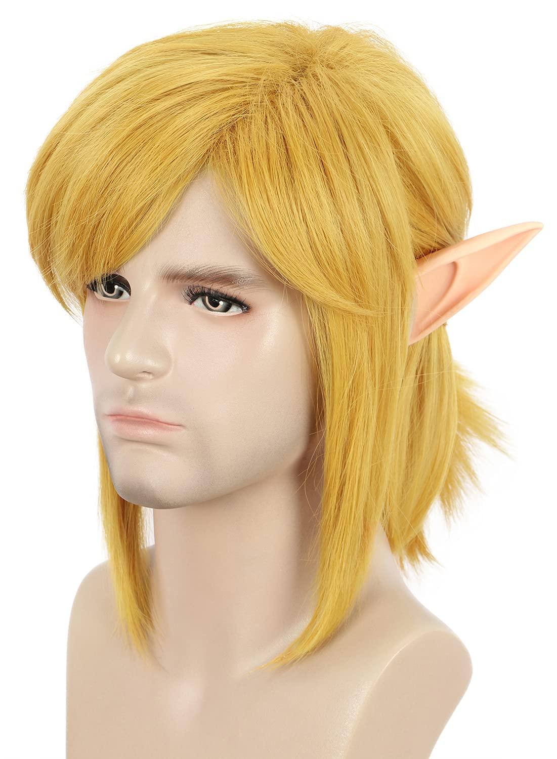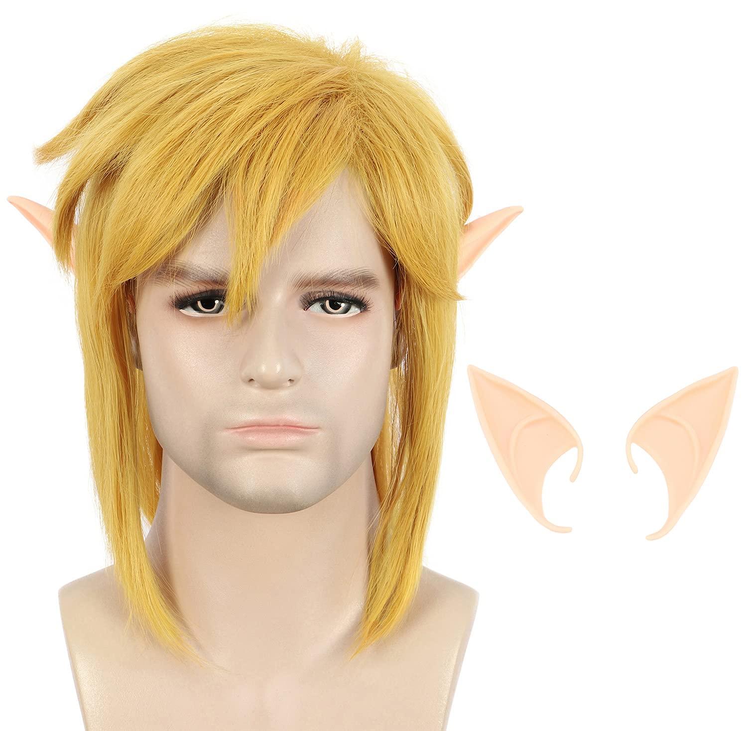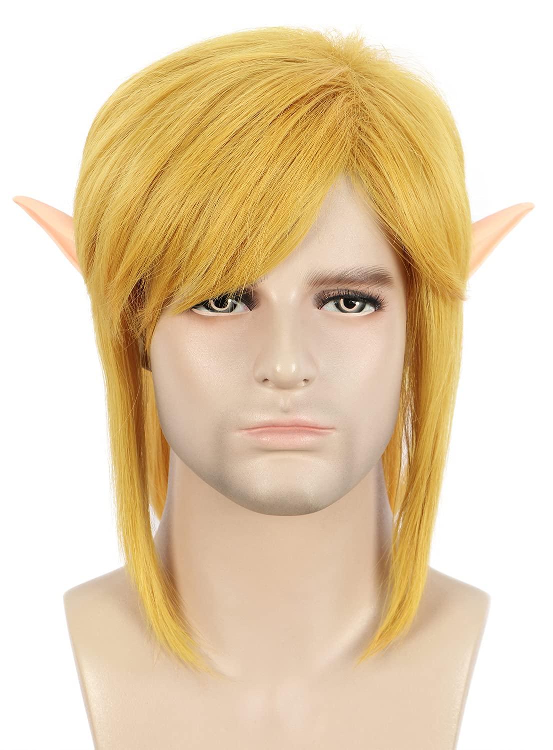 karlery Adult Men Short Wave Blonde Bangs Wig with Elf Ears Halloween Cosplay Costume Party Wig(Short)
