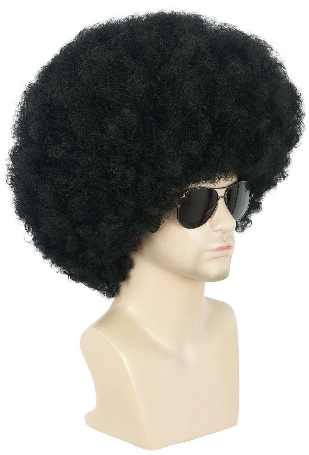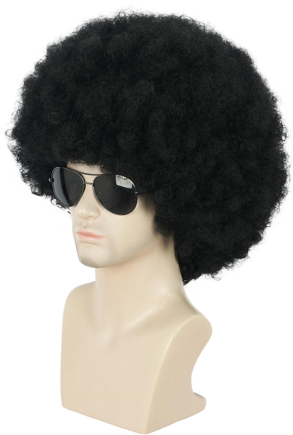 karlery Adult Men Women Afro 70s 80s Curly Black Wig Rocker Party Wig California Halloween Costume Wig(Black)