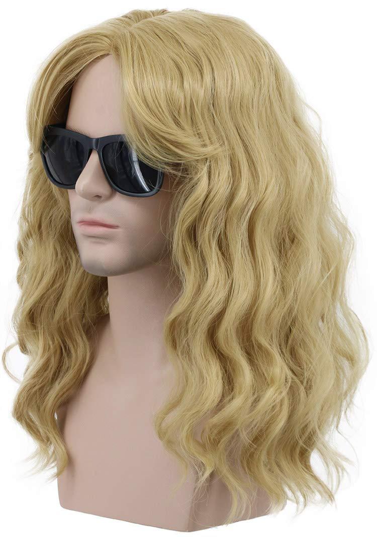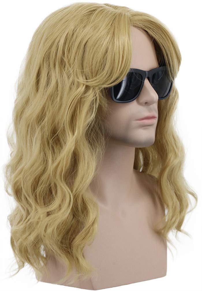 karlery California 80s Rocker Wig Men Women Long Curly Brown Halloween Costume Anime Wig(Blonde)