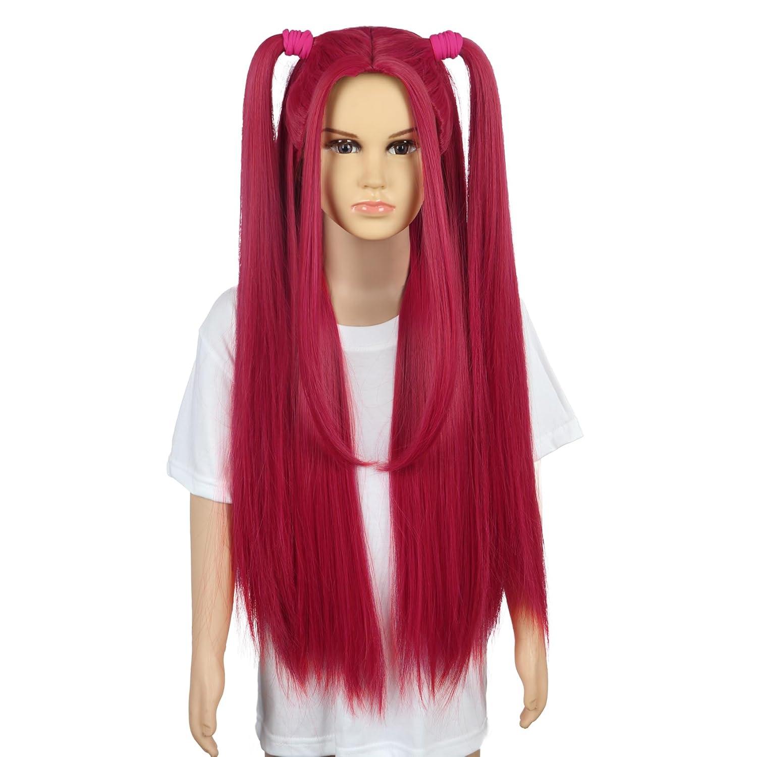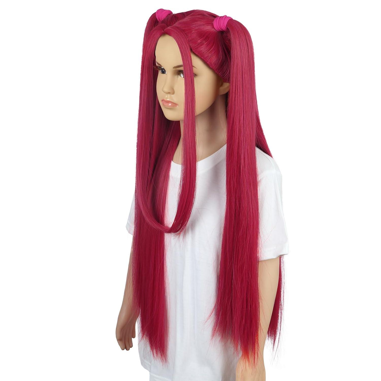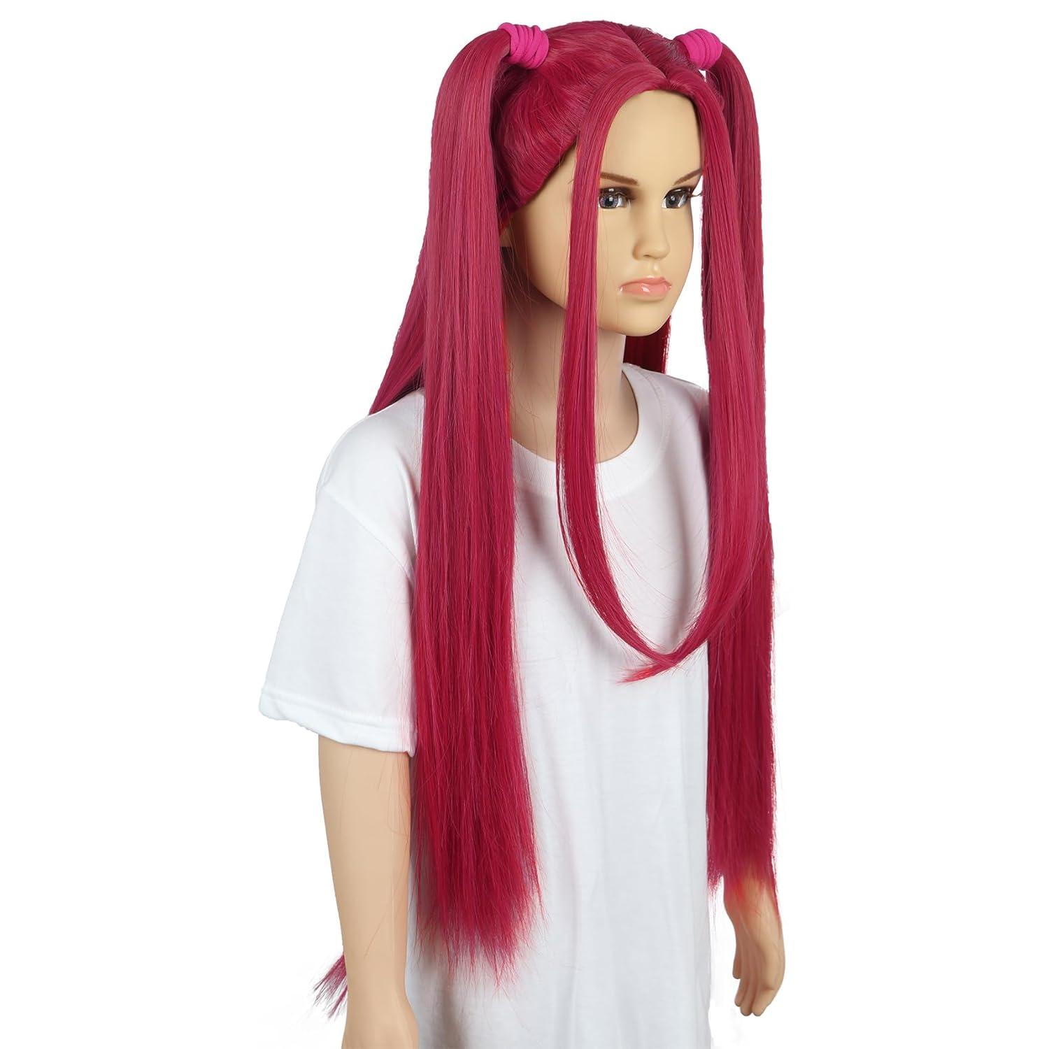 karlery Girls Short Black Deep Purple Wig with 2 Buns Cartoon Anime Movie Cosplay Wig Heat Resistant Synthetic Fiber Brethable Adjustable Size for Halloween Costume Party(Hot Pink)