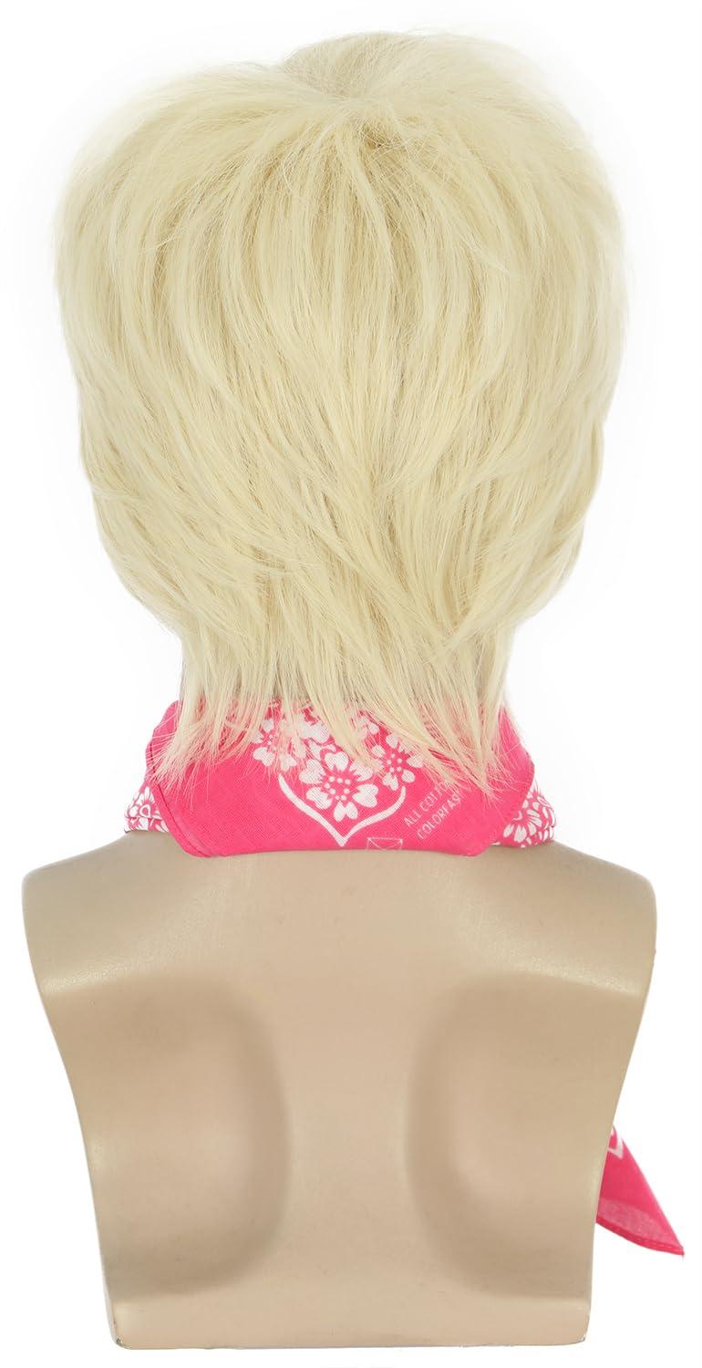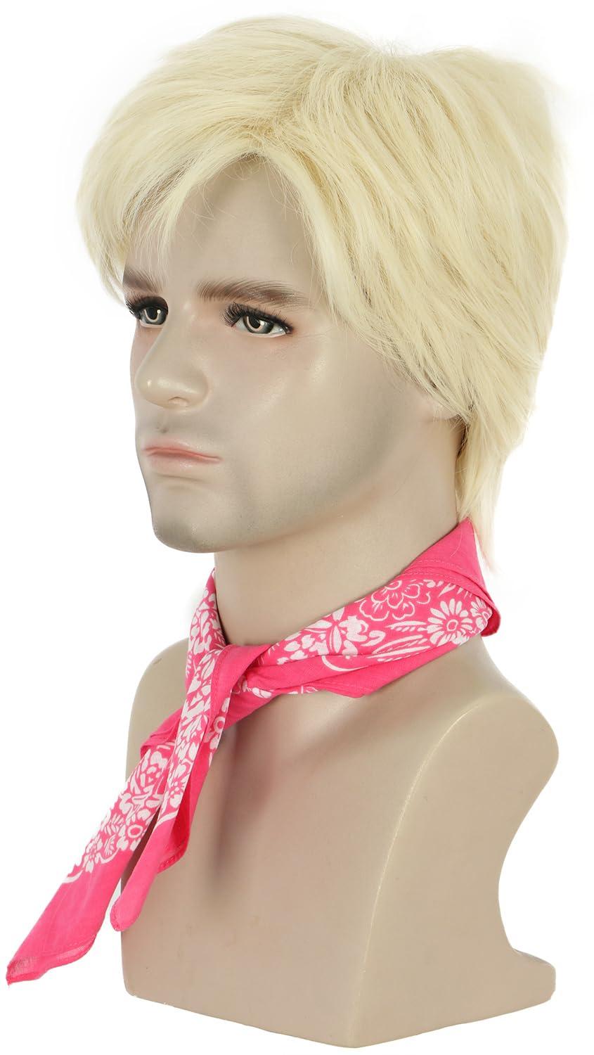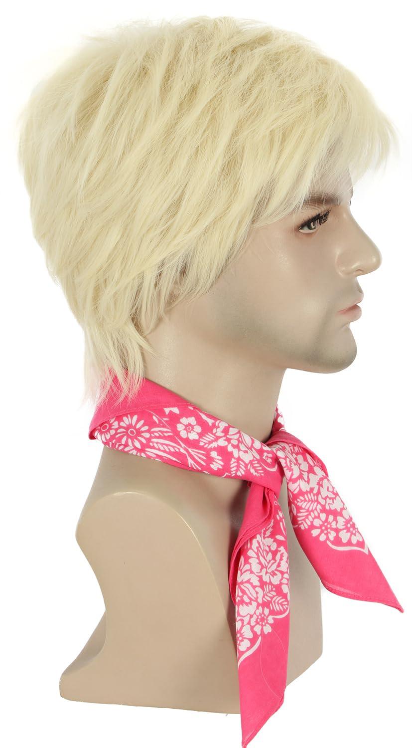 karlery Men Short Blonde Wig with Pink Bandana Natural Looking Daily Wig Halloween Cosplay Party Costume Wig