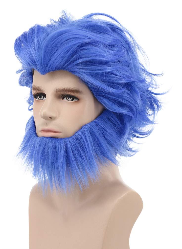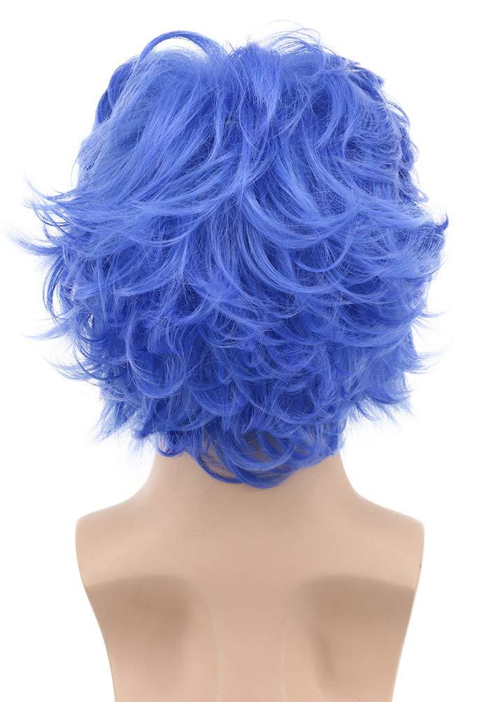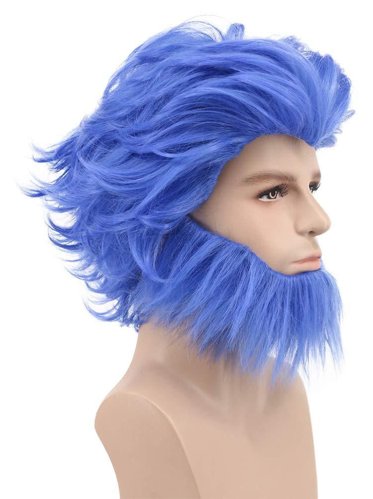 karlery Men Short Wave Blue Moustache Wig Halloween Cosplay Wig Anime Costume Party Wig