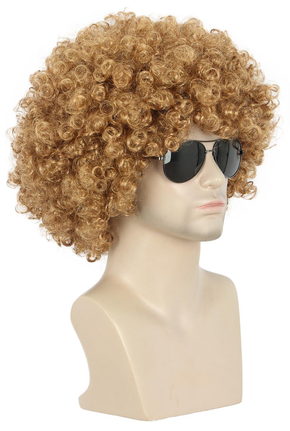 karlery Men Women Afro 70s 80s Short Curly Golden Rocker Party Wig California Halloween Costume Cosplay Wig