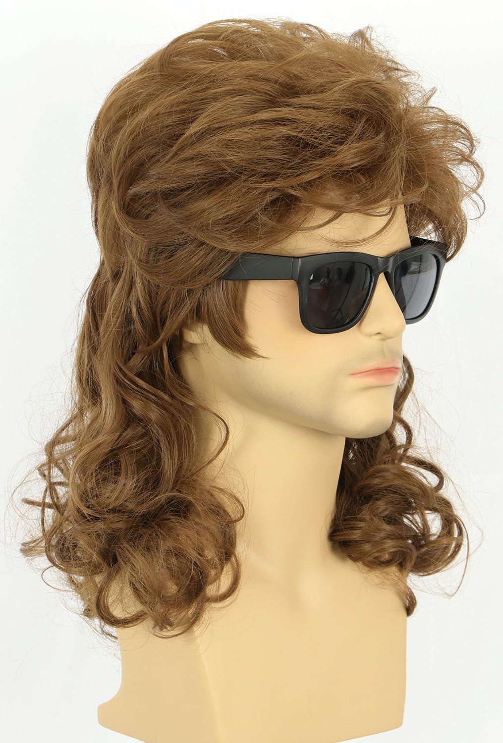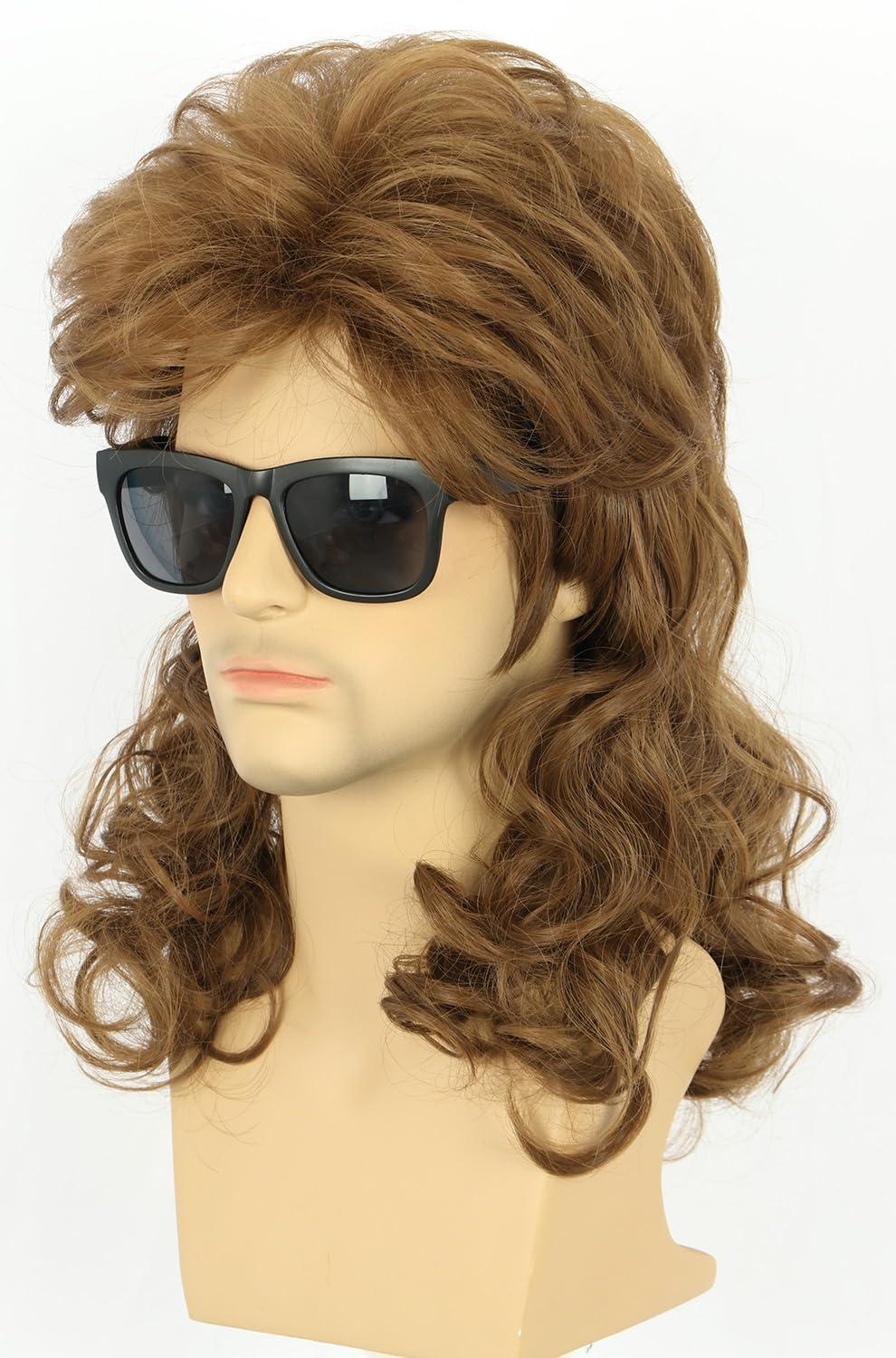 karlery Men Women Long Curly Dark Brown 70s 80s Heavy Metal Rocker Mullet Wig Costume Anime Wig(Brown)