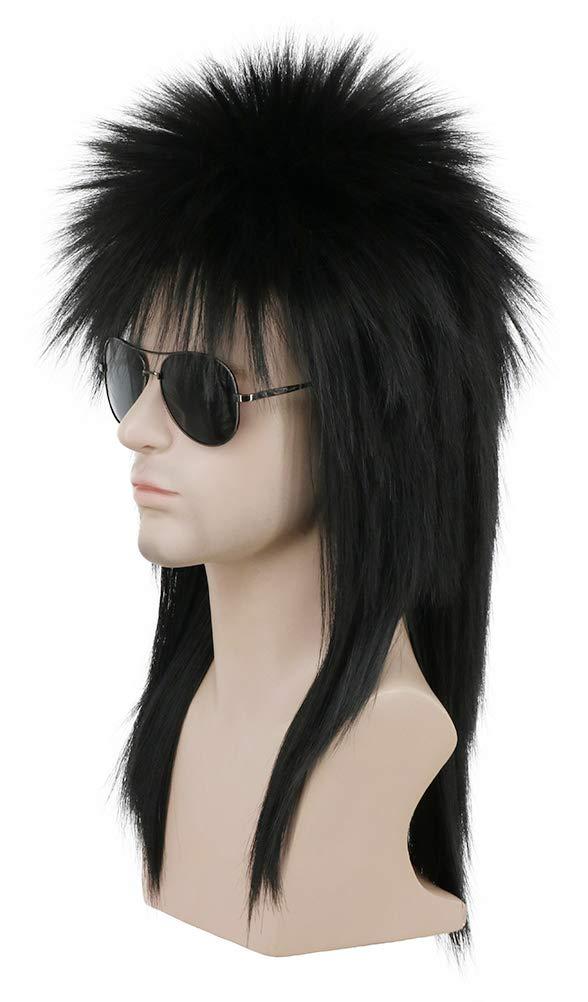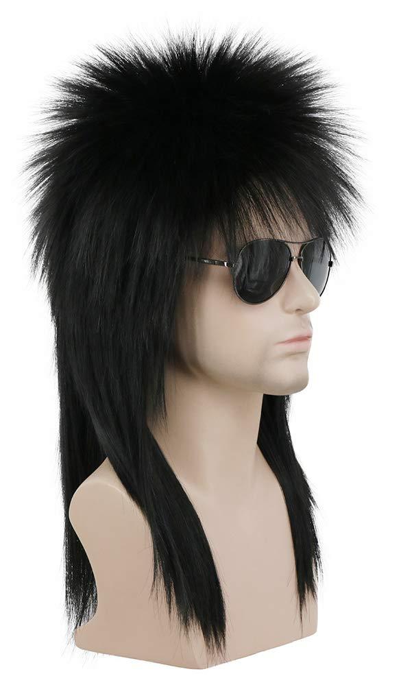 karlery Men Women Long Straight Orange Ginger Mullet Wig 70s 80s Heavy Metal Rocker Punk Wig for Cosplay Event Costume Halloween Party(Black)