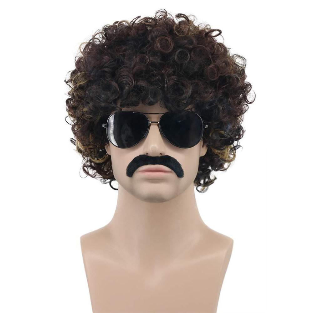 Be the first to review “karlery Men Women Rocker Short Bob Curly Brown Gold Mustache Beard Disco Wig California Halloween Cosplay Afro Wig Anime Costume Party Wig(Brown)”