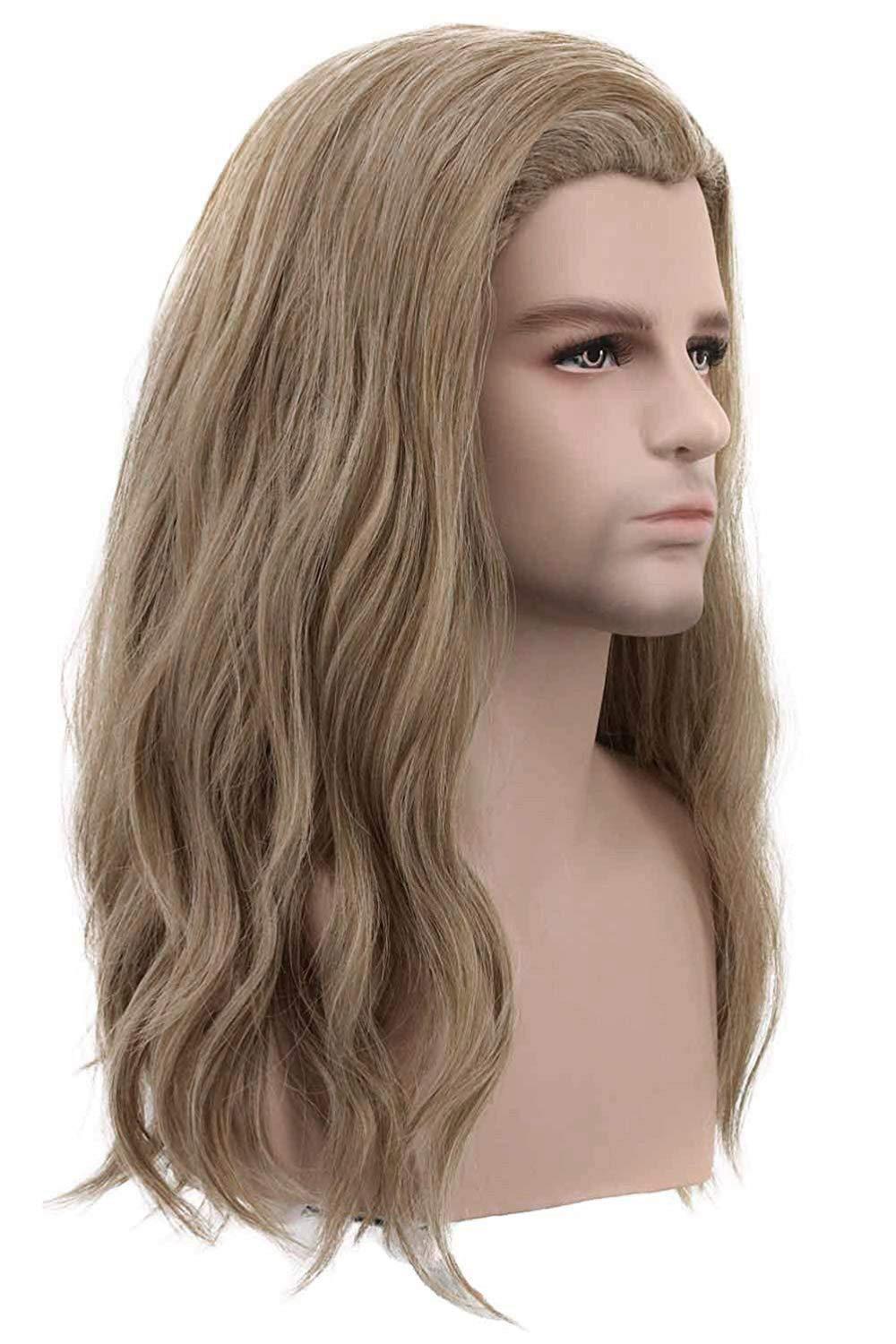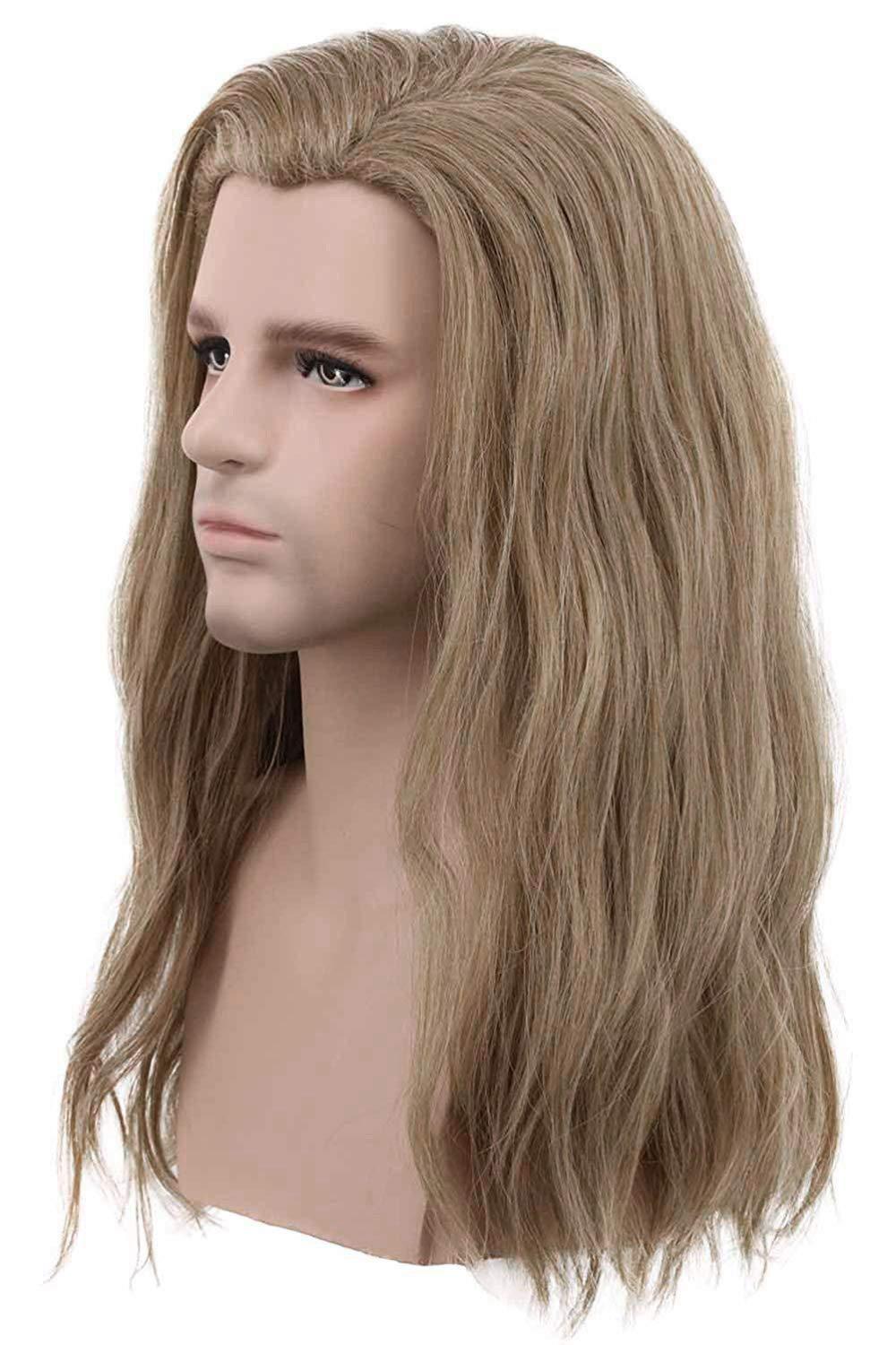 karlery Mens Long Curly Wave Light Brown Wig Halloween Cosplay Wig Anime Costume Party Wig