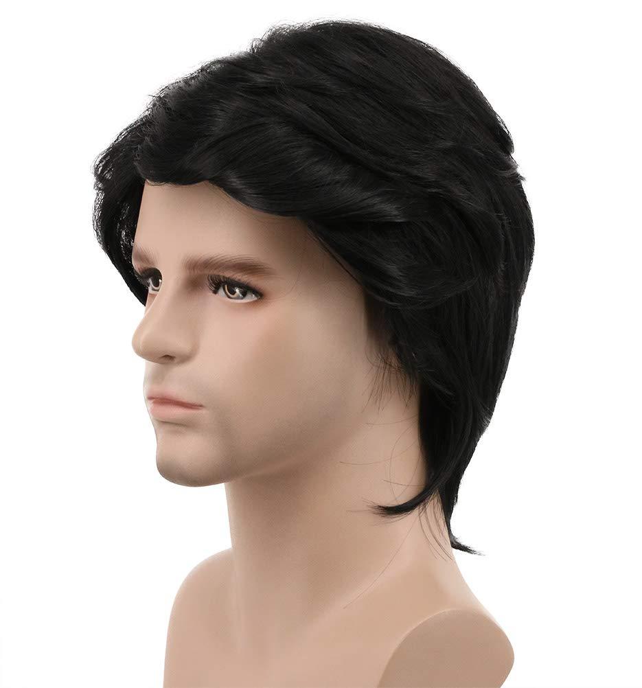 karlery Mens Short Curly Fluffy Dark Brown Wig Halloween Costume Wig Party Cosplay Wig(Black)
