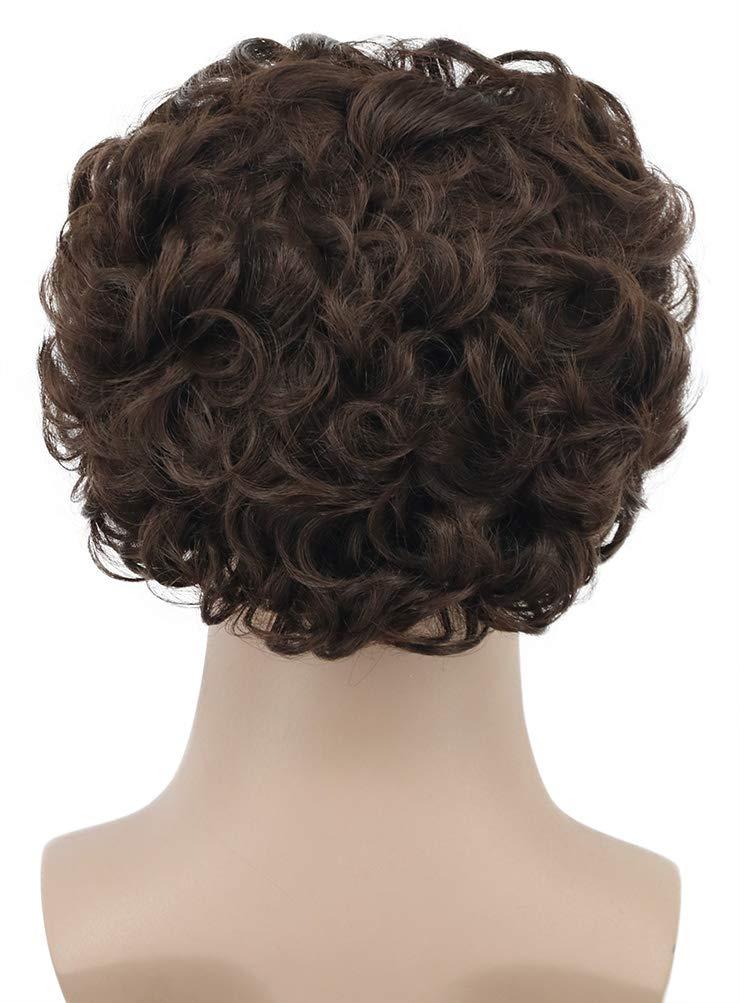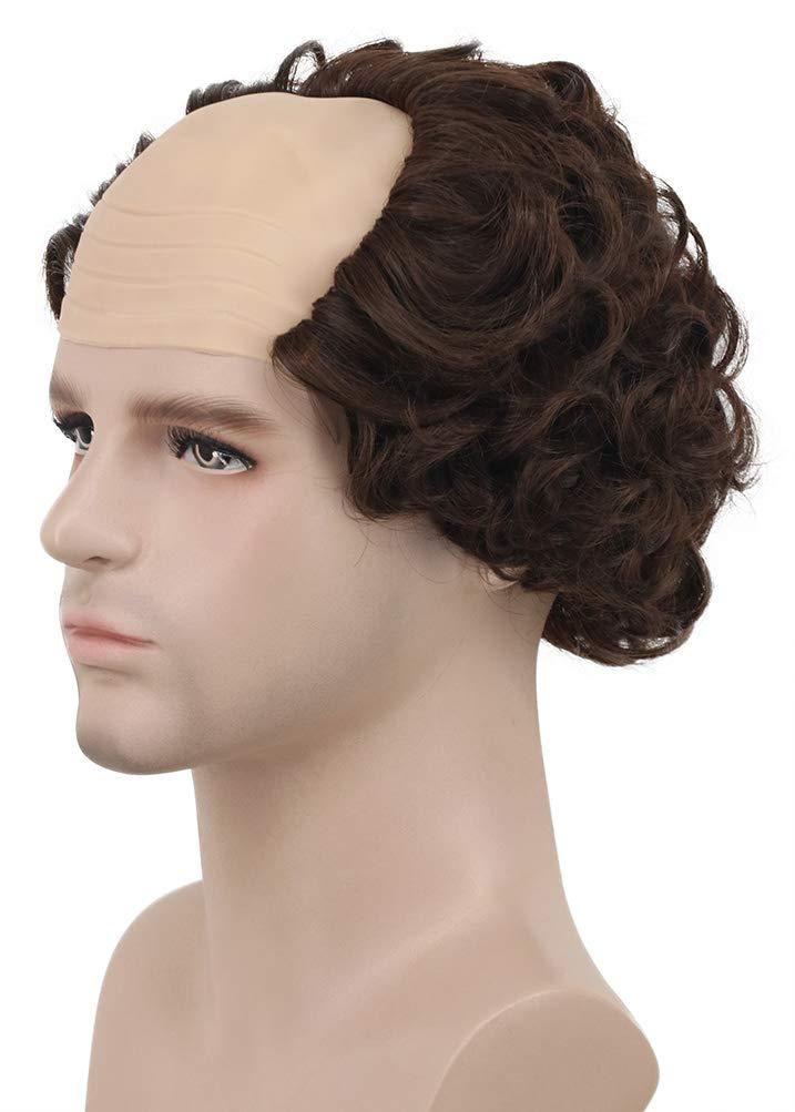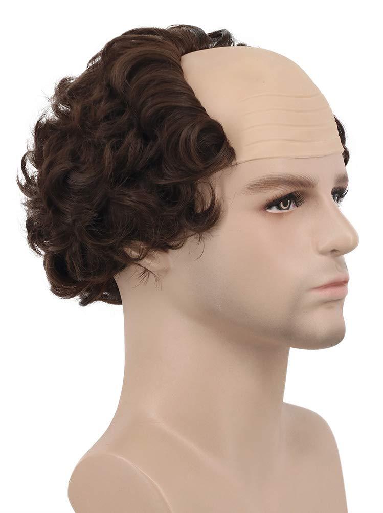 karlery Short Curly Grey Fits Old Man Bald Cap Wig Grandpa Halloween Cosplay Anime Costume Party Wig(Brown)