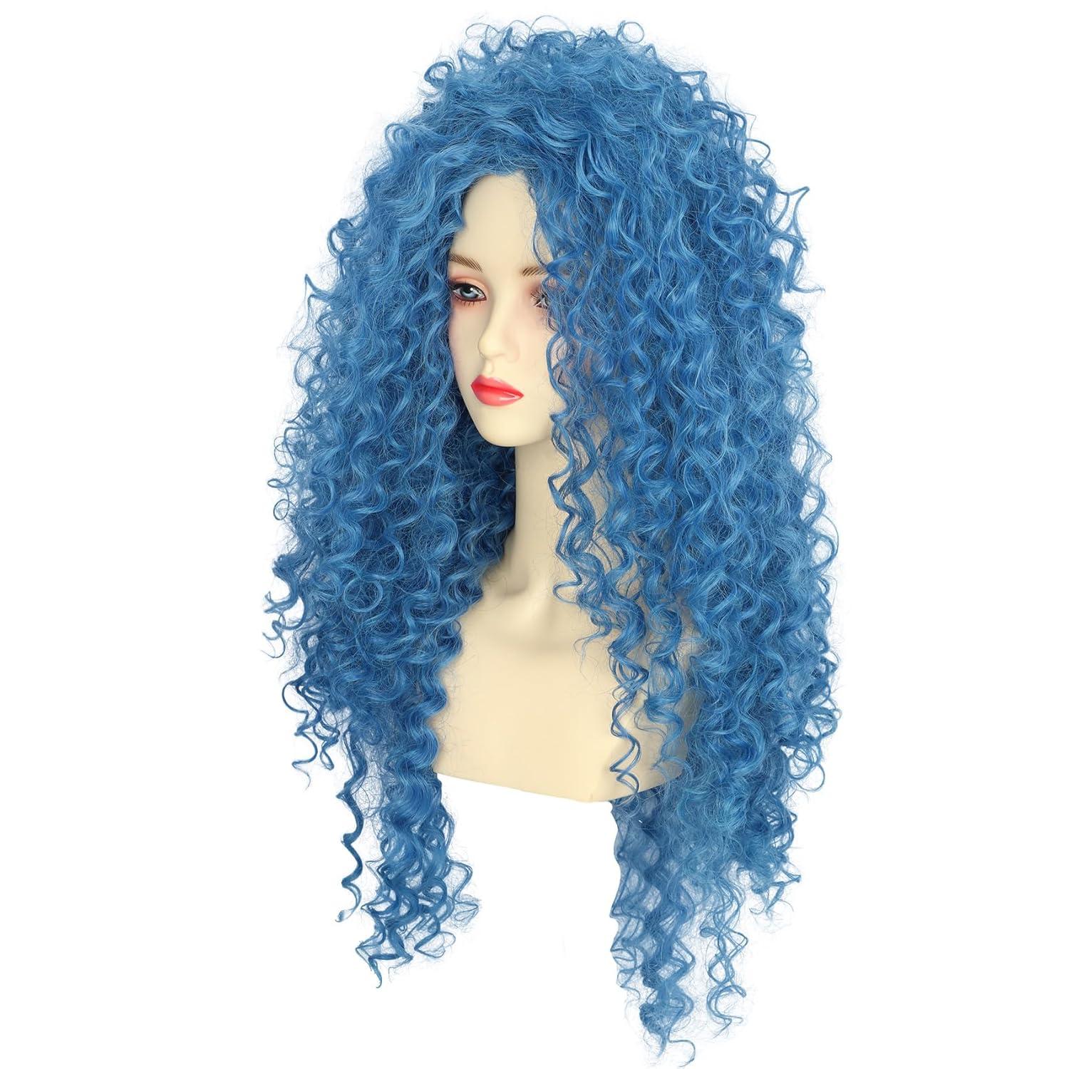 karlery Women Adult Long Blue Curly Wig Halloween Cosplay Party Costume Wig