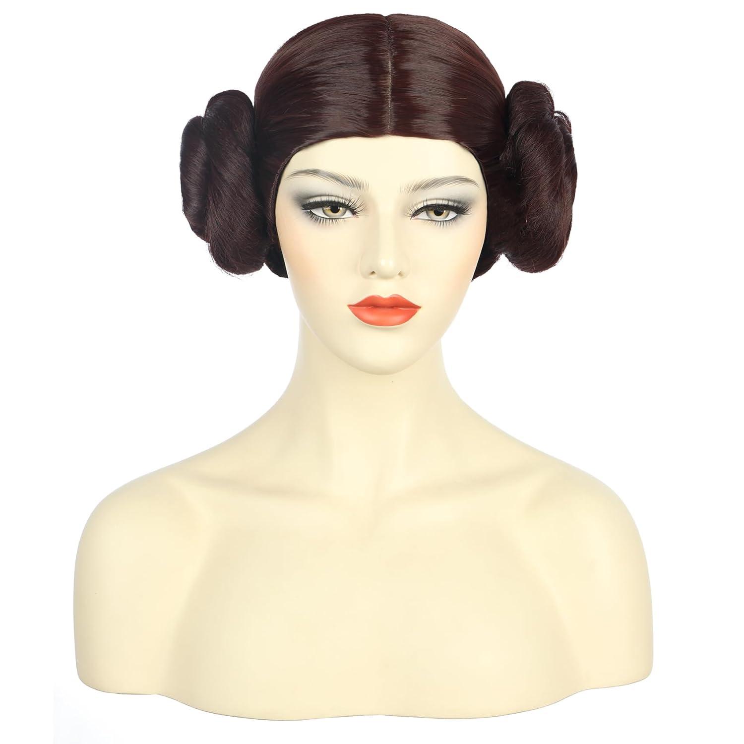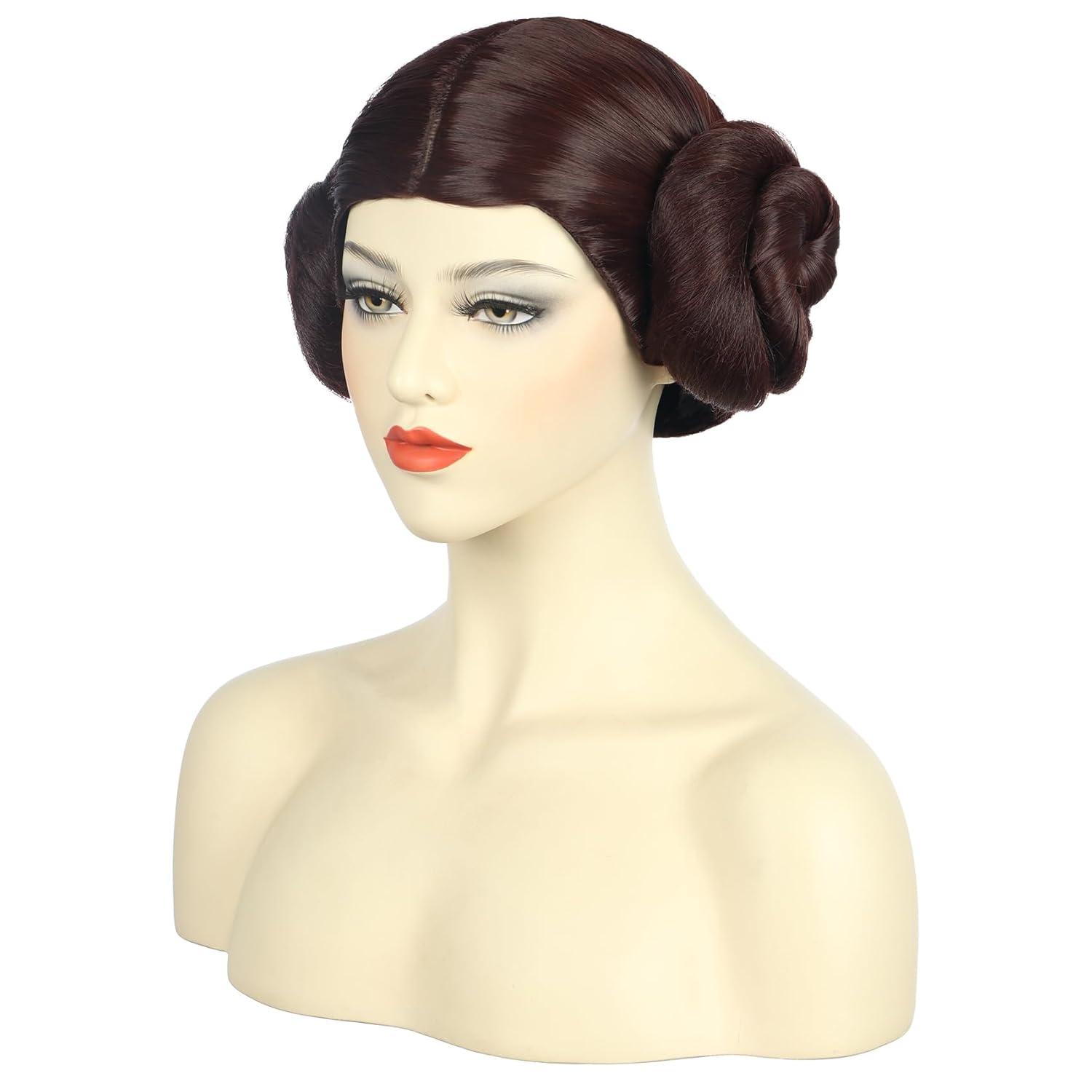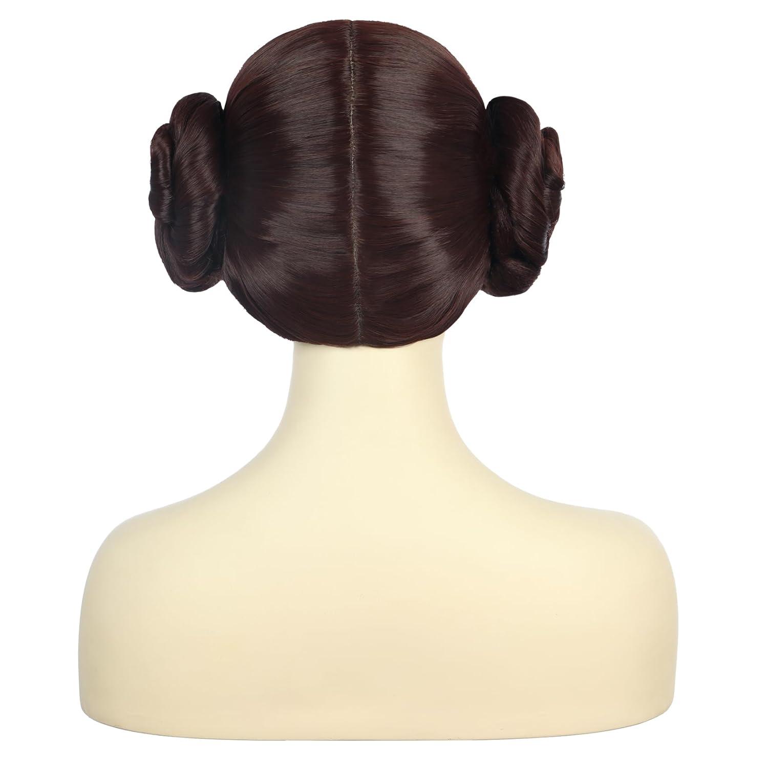 karlery Women Short Dark Brown Wig with Two Buns Princess Cosplay Wig Heat Resistant Synthetic Fiber Brethable Adjustable Size for Halloween Costume Party