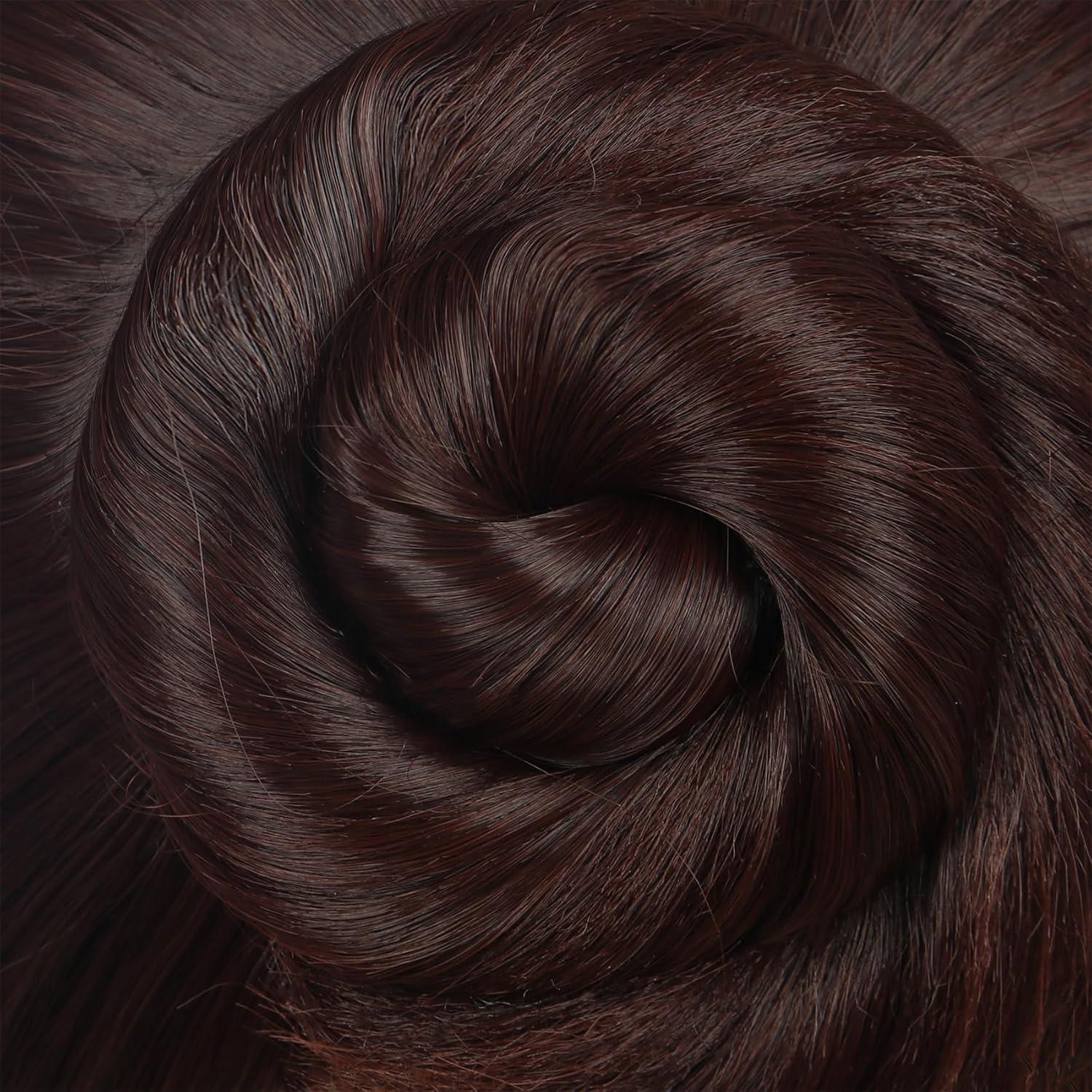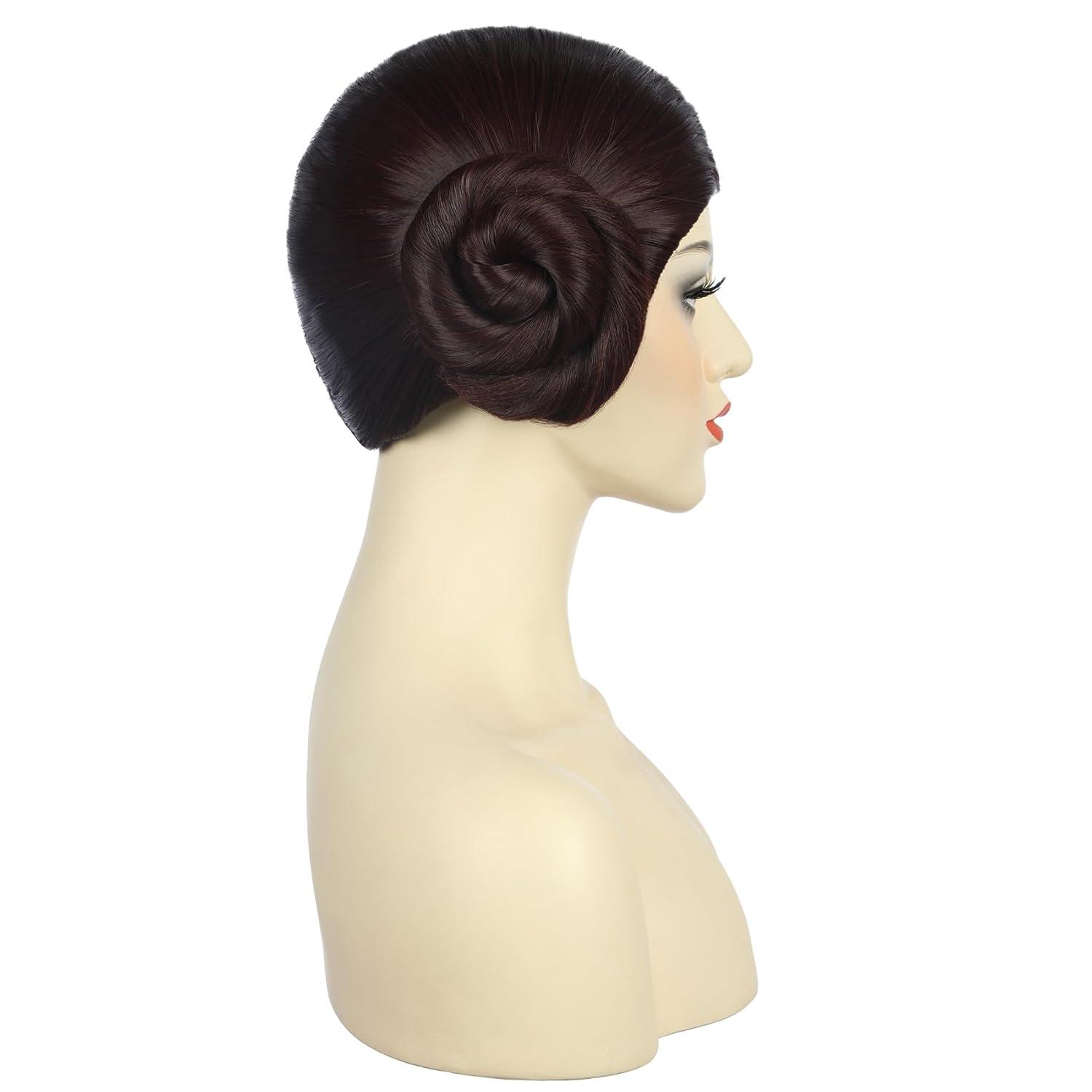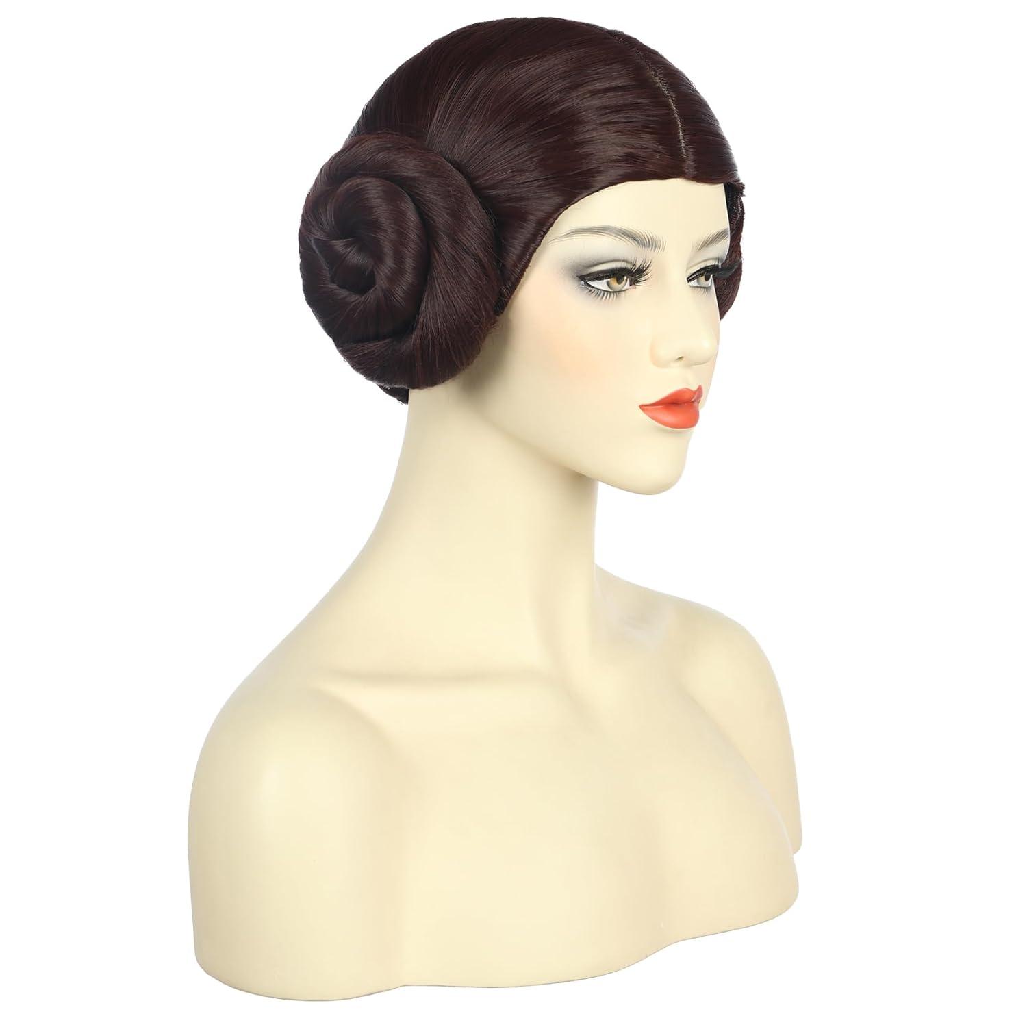 karlery Women Short Dark Brown Wig with Two Buns Princess Cosplay Wig Heat Resistant Synthetic Fiber Brethable Adjustable Size for Halloween Costume Party