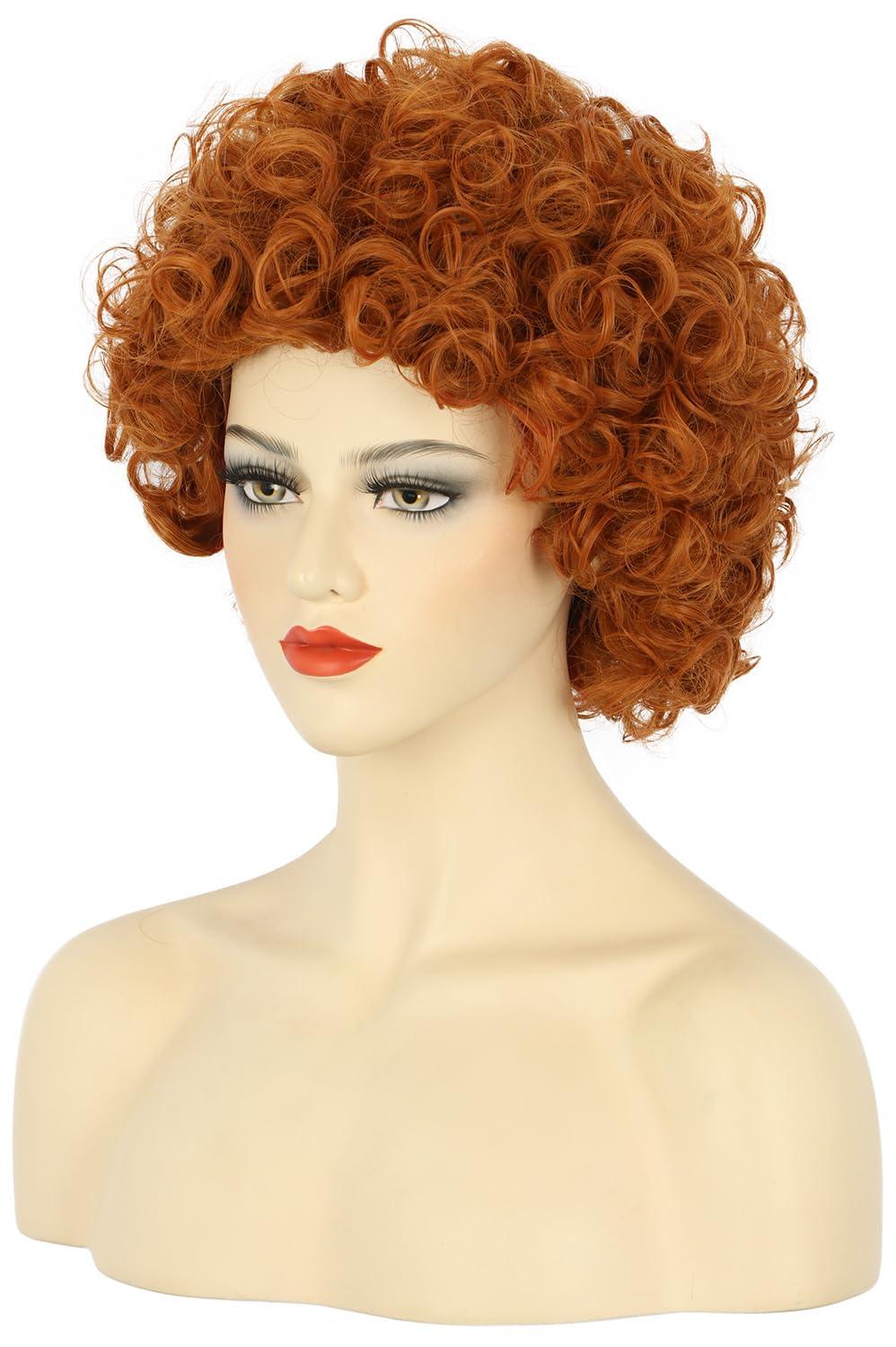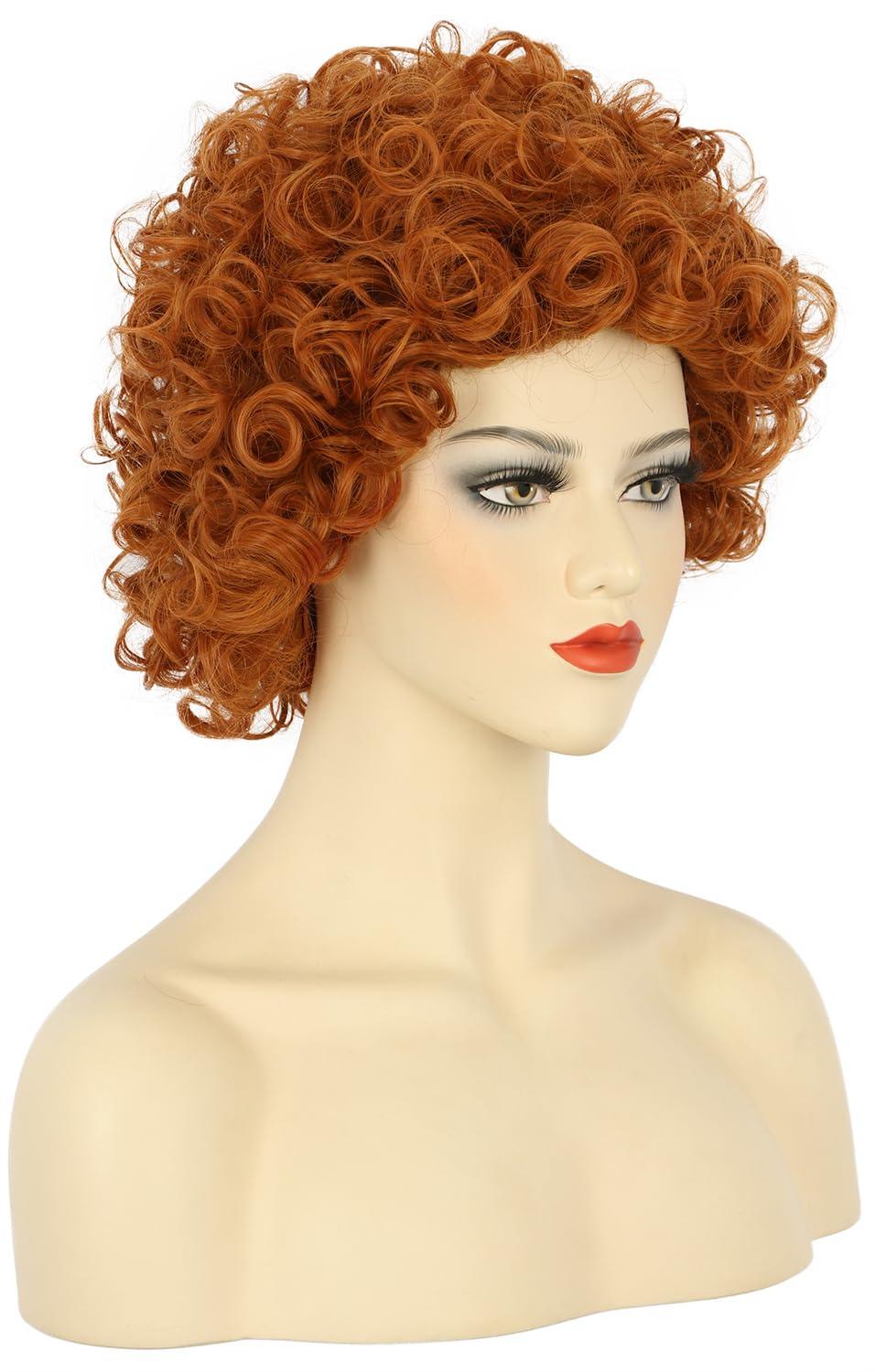 karlery Women’s Short Curly Brown Afro Wig 70s 80s Disco Hippie Halloween Cosplay Party Wig(Orange)